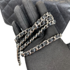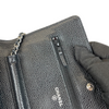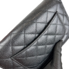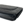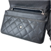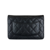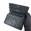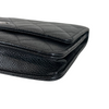 This Chanel Caviar Wallet on Chain features a black caviar quilted leather body, a leather woven silver-tone chain strap, a front flap with a snap closure, and interior zip and slip pockets.