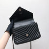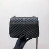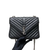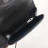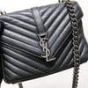 This Yves Saint Laurent Medium College bag features quilted lambskin leather with the signature interlaced YSL Logo in black-toned hardware on the front flap. It also has a top handle as well as a removable chain and leather strap that allows both shoulder and crossbody wear. The interior contains two compartments with a zippered pouch and one card slot. With this chic yet striking bag, you can add more presence to your already stylish outfit.