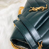 This Saint Laurent Loulou Matelassé "Y" Chain Satchel is a fierce fashion statement for the fashion-forward. This stunning bag features smooth leather with the signature interlaced YSL monogram detail in gold hardware on the front flap. The interior features two compartments separated by a zippered pouch as well as a one card slot, with plenty of room for all of your essentials.  Add a bold edge to your most basic outfit with this flexibly structured classic Saint Laurent!