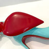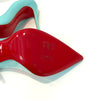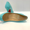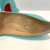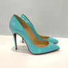 These classic 100mm pumps are the perfect way to make the everyday not so everyday. The signature pointed-toe silhouette and sleek stiletto heel makes this look a timeless knockout. We love the contrast of girly, glossy tiffany blue against the Louboutin red sole. A perfect match for your chambray pieces or an LBD.