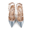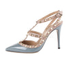 square studs, these heels are the perfect medley between classic femininity and new-age edge – a killer combo for our city fashionistas! Its parent finish and pointed-toe silhouette will make your feet look stylishly sleek. The pastel blue tones on this one will definitely make for a romantic accessory to any outfit.
