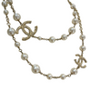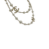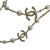 This is an authentic CHANEL Pearl CC Long Necklace in Gold. This stylish necklace is crafted from pearls and adorned with gold-tone CC logos interspersed throughout.