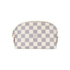 The Louis Vuitton Cosmetic Pouch in Damier Azure with Gold Hardware is a stylish and practical accessory. The pouch is crafted from coated canvas, making it durable and easy to clean. This elegant pouch features a zipper closure, providing secure storage for your belongings. Additionally, there is an inside flat pocket, offering a convenient space to organize smaller items.