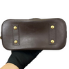 This is an authentic Louis Vuitton Damier Ebene Alma BB. This petite bowling-style tote is made from Louis Vuitton's iconic checked coated canvas, complemented by rich brown polished cowhide leather accents, rolled handles, and gold-tone hardware. It offers a red fabric interior with a flat pocket and includes a clochette for keys and a padlock for security.