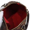 This is an authentic Louis Vuitton Damier Ebene Speedy 30. This chic handbag is skillfully made from Louis Vuitton's classic Damier patterned canvas in brown. It comes with brown rolled leather top handles and matching accents, all complemented by shiny gold hardware. When you unzip the top, you'll discover a red fabric interior complete with a convenient hanging pocket.