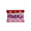 This is an authentic Louis Vuitton Kirigami Pochette Small Monogram Escale in Red. This petite pouch is crafted of classic Louis Vuitton monogram coated canvas. The pouch features a silver button snap and opens to a red leather interior.