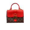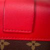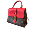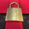 This is an authentic Louis Vuitton Locky BB Monogram Canvas in Coquelicot. This handbag is made of Louis Vuitton's signature monogram coated canvas with a vibrant red leather flap, top handle, and optional shoulder strap, with polished gold hardware. The bag features a large gold faux lock on the front flap and opens to a red microfiber interior with a flat pocket.