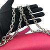 This is an authentic Louis Vuitton Medium Epi Twist Shoulder Bag MM in Pink. This stylish crossbody bag is made of textured epi leather in pink. The bag features a silver chain shoulder strap and a matching LV turn-lock on the facing flap. This opens to a pink microfiber interior with patch pockets. Its classis color is the perfect way to add sophistication to any outfit.