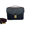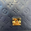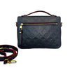 This is an authentic Louis Vuitton Pochette Metis Empreinte in Dark Blue. This stylish shoulder bag is made of classic monogram-embossed leather in blue. The handbag features a top handle, an adjustable leather shoulder strap, and gold hardware. Add this timeless piece to your collection today!
