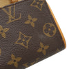 This is an authentic Louis Vuitton Pochette Twin PM Monogram in Brown. This classic pochette is crafted of a classic brown Louis Vuitton monogram on toile canvas. This handbag has a detachable vachetta leather strap and a long flap that opens to a beige microfiber interior.