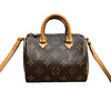 This is an authentic Louis Vuitton Speedy Mini Monogram in Brown. This chic mini handbag is made of Louis Vuitton monogram on the Monogram canvas in brown. The bag features vachetta cowhide leather trim, and rolled leather top handles, with gold tone hardware. The top zipper opens to a cocoa brown fabric interior.