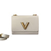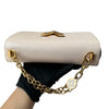 This is an authentic Louis Vuitton Twist MM Flower Chain Shoulder in Quartz White. This stylish shoulder bag is crafted of textured epi leather. The bag features a gold tone chain shoulder strap, an optional shoulder strap, and a twist lock on the facing flap. This opens to a matching microfiber interior with patch pockets.