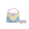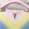The Louis Vuitton mini Capucines perfect chic city bag for day-to-night socials. It is fashioned from full-grain Taurillon leather and has a calfskin leather interior lining. It is enclosed with a distinctive flap which can be displayed in two ways: outside to reveal a Monogram Flower motif, or inside to display the leather-wrapped “LV” emblem.