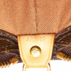 It carries an 8/10 condition rating. The exterior canvas is in great condition. The leather has a honey colored patina, with some stain visible. The interior is clean and with some blemishes visible. The sole of the bag has suffered staining. The hardware is in great condition, with some hairline marks and most of its original sheen still present.