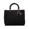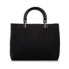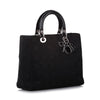 The Lady Dior features a quilted nylon body, rolled handles, a top zip closure, and an interior zip pocket.