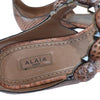This is an authentic Alaia Studded T-Strap Sandals Python Brown in Size 37.5. The perfect summer sandal for every day wear. These ocean teal beauties are great for a sunny day at the beach or pool side mornings. Wear yours with light denims or a dress for an easy summer outfit.