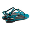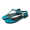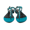 The perfect summer sandal for every day wear. These ocean teal beauties are great for a sunny day at the beach or pool side mornings. Embellished with silver tone hardware, they’re perfect for a cutting-edge feminine look. Wear yours with light denims or a dress for an easy summer outfit.