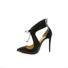 Are they booties, are they heels? They’re such a delicious combination of both.  The architectural design with this sweet little tie up detail in front makes these loubies irresistible.  Go out looking professional with a dash of danger.