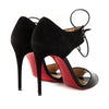 The perfect pair of sandals for the adventurous fashionistas. Done with a bold medley of suede top-line and patent leather bottom strap, these Christian Louboutin Mayerling Lace-up Sandals are a classic statement piece. They also come with a 4” covered stiletto heel and an open toe cut for a more feminine silhouette, and a gun-metal lace-up to add some extra edge. Wear yours with anything from denims to dresses.