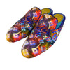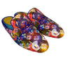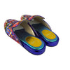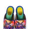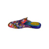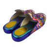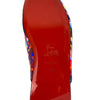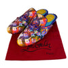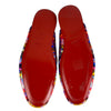 This is an authentic Christian Louboutin Neo Disco Flat Mules Navy Coolito in Size 38.5. It’s covered in a colorful graffiti-like pattern. But what really catches your eye is the bright neon logo embroidery and the shiny metallic leather edges. And when you walk, the vibrant red sole stands out, like someone painted it with red nail polish.