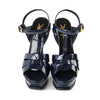 Who doesn’t love a good pair of strappy sandals? With interlocking straps, these deep blue shoes will create an elongated and feminine silhouette for your feet. Set on a petite wooden heel and trendy oversized platforms, these Saint Laurent Tribute Sandals are perfect for special soirees. Wear yours with anything from denim jeans to tailored dresses.