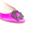 Who says Manolo's should only be reserved for weddings? Sultry yet conservative, these classic Manolo Blahnik Hangisi Flats add a strong feminine allure to any outfit. The perfect dichotomy between its soft satin and strong crystal embellishment makes for a great accessory for both day-to-day office attire and a special soirée, especially with its flat heel. With a padded insole, these shoes are definitely a more forgiving choice for your feet!