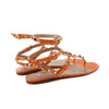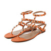 We can never get enough of these classic Valentino's with a summer twist. Ornamented with strong square studs, these Valentino Rockstud Leather Flat Sandals are the perfect medley between classic femininity and new-age edge – a killer combo for our city fashionistas! With its gladiator-style silhouette, these sandals are the perfect accessory for your summer activities - from festivals toe beach picnics! Wear yours with a sundress or a plain tee with distressed denim shorts.