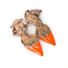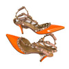 Ornamented with strong square studs, these ValentinoOrange Rockstuds are the perfect medley between classic femininity and new-age edge – a killer combo for our city fashionistas! The pointed-toe silhouette will make your feet look stylishly sleek. We love thepop of colour on this one. Exterior in excellent condition, signs of wear on soles.