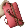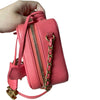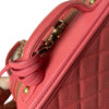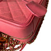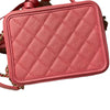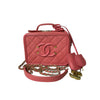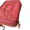 This Chanel Filigree Vanity Case in size small is crafted in Chanel’s signature caviar leather in pink and accentuated with gold hardware. This bag can be worn top handle, shoulder or crossbody.