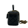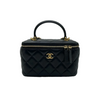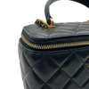 Lambskin Small Top Handle Vanity Case with Chain Black GHW