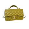 Top Handle Flap Mini Lambskin Quilted Olive Green GHW