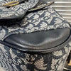 This is an authentic Christian Dior Double Saddle Monogram Canvas in Navy Blue with Gold Hardware. This stylish handbag is crafted of Dior monogram canvas. The bag features blue leather top handles and D” charm on the front strap. The opens to a navy interior with a zipper pocket.