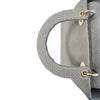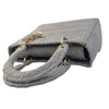 This is an authentic Christian Dior Lady D-Lite Medium Canvas Embroidered Cannage in Grey. Crafted from exquisite grey Cannage canvas, this elegant handbag tote bears the iconic 'Christian Dior' signature. It boasts fabric top handles and a shoulder strap adorned with gold hardware, including a charming Dior letters pendant. The spacious interior is lined with Dior monogram fabric and includes a convenient zipper pocket.