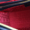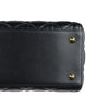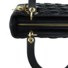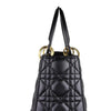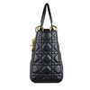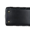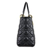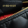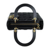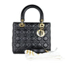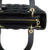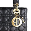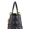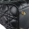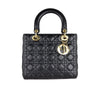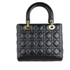 This is an authentic Christian Dior Medium Lady Dior Lambskin in Black. This elegant bag is made from lambskin leather. It comes with leather top handles and an optional shoulder strap, adorned with polished gold hardware, along with a dangling Dior logo charm. The top zipper reveals a red Dior monogram jacquard fabric interior with a zip pocket.