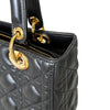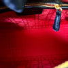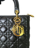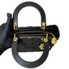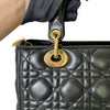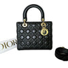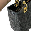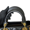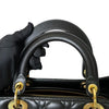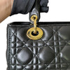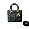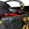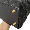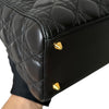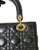 This is an authentic Christian Dior Lady Dior Medium Lambskin Cannage in Black. This tote is crafted from black lambskin leather. It features leather top handles, an optional shoulder strap, and polished gold hardware. The top zipper reveals a red Dior monogram jacquard fabric interior with a zip pocket.