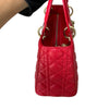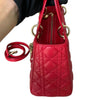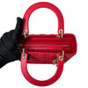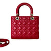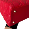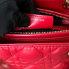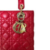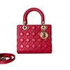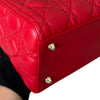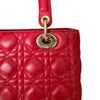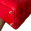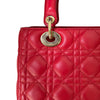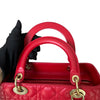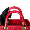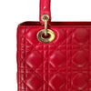 This is an authentic Christian Dior Lady Dior Medium Lambskin Cannage in Red with Gold Hardware. This stylish handbag is crafted of lambskin leather in red. It features leather top handles, an optional shoulder strap and gold tone Dior Charm. The top zipper that opens to a fabric interior with a zipper pocket.