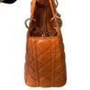 This is an authentic Christian Dior Lady Dior Medium Lambskin Cannage in Tan. This delightful tote is made of lambskin leather. The bag has rolled leather handles, and a shoulder strap and gold hardware including a hanging gold "Dior" charm. The top zipper opens to a fabric interior with a zipper pocket.