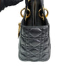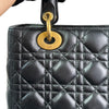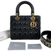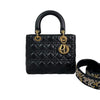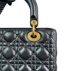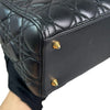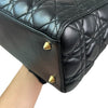 This is an authentic Christian Dior Lady Dior Medium Lambskin Quilted in Black. This tote is crafted from black lambskin leather. It features leather top handles, an optional wide shoulder strap, and polished gold hardware. The top zipper reveals a red Dior monogram jacquard fabric interior with a zip pocket.