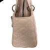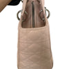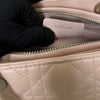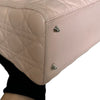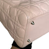 This is an authentic Christian Dior Lady Dior Medium Lambskin Quilted in Light Pink. This chic tote is crafted of quilted lambskin leather. The bag features sturdy leather top handles, an optional studded leather shoulder strap, and silver hardware including hanging Dior initials logo charm. The top zipper opens to a matching leather interior with zipper and patch pockets.