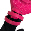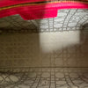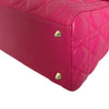 This is an authentic Christian Dior Lady Dior Medium Lambskin Quilted in Pink. This elegant bag made from lambskin leather, boasts reinforced top handles adorned with gold links. It also includes an optional leather shoulder strap featuring gold clasps and a Dior charm. The top zipper reveals a grey monogram jacquard fabric interior with a convenient zipper pocket.
