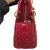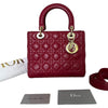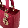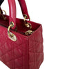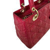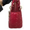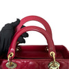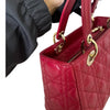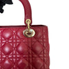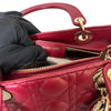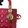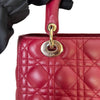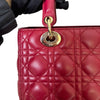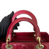 This is an authentic Christian Dior Lady Dior Medium Lambskin in Red with Gold Hardware. This stylish handbag is crafted of lambskin leather. It features leather top handles, an optional shoulder strap and gold tone Dior charm. The top zipper that opens to a fabric interior with a zipper pocket.