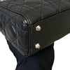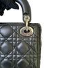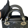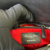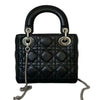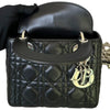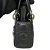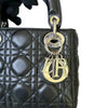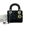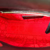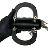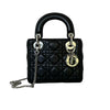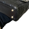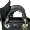 This is an authentic Christian Dior Lady Dior Mini Lambskin Cannage in Black. This mini tote is crafted of lambskin leather with a geometric-quilted design in black. The bag has matching black leather top handles including a hanging Dior charm. The interior is a red Dior logo jacquard textile with a zipper pocket.