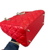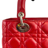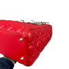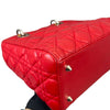 This is an authentic Christian Dior Limited Edition Medium Lady Dior in Red. This chic handbag is made from red cannage-quilted leather and comes with leather top handles, an optional silver hardware shoulder strap, and a top zipper. Inside, you'll find a matching leather with a zipper pocket.