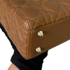 This is an authentic Christian Dior My ABC Dior Lady Dior Small Lambskin Cannage in Brown. This chic tote is crafted of quilted lambskin leather. The bag has a broad shoulder strap, leather top handles, and shiny gold hardware, including a Dior initials logo charm. Inside, it reveals a Dior monogram jacquard fabric and a zipper pocket.
