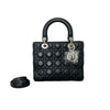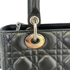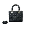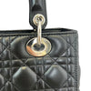 This Christian Dior Lambskin Cannage Medium Lady Dior in black is a quintessential classic bag from the house of Dior. This bag features a black lambskin leather exterior paired with a red Dior monogram jacquard interior fabric. This classic Lady Dior Bag is an ideal day to day accessory.