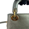 This Christian Dior Mini Lady Dior in copper-toned Lizard leather with gold toned hardware is a chic and iconic piece. The design is timeless and the size is perfect for everyday use. This classic bag can be used throughout the day but is perfect for your evening socials.