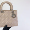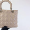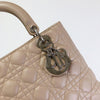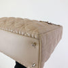 The Lady Dior bag comes in a beautiful beige colour that is sure to match any outfit. It features silver hardware and a top inner flap that opens to a classy interior in black Dior monogram jacquard fabric with a zip pocket. Whether you choose to wear it as a handbag or shoulder bag, this classic bag can be used throughout the day and is perfect for your evening socials. Get this bag in Like New condition for a fraction of the Retail cost.