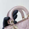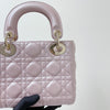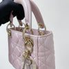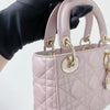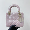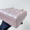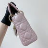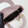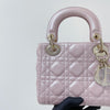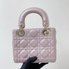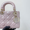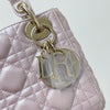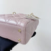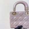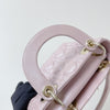 This Mini Lady Dior Pearl Pink is so cute, you'll fit right in at your favourite bistro. This chic bag features a roomy enough interior for your basic essentials and a long chain strap for a touch of elegance.