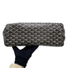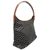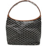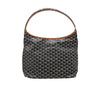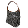 This is an authentic Goyard Boheme Hobo Goyardine in Black and Brown. This stylish hobo is finely crafted of black Goyardine coated canvas with the iconic chevron monogram pattern. The bag features a leather looping shoulder strap, brown leather trim, and silver hardware. The top zipper opens to reveal a spacious natural canvas fabric interior with a matching removable pouch.