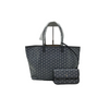This is an authentic Goyard Goyardine Saint Louis PM in Grey. This tote showcases the classic Goyard chevron pattern on a grey canvas. It is elegantly accented with leather trim along the upper edge and boasts sturdy and reliable thin rolled leather handles. The bag's interior is lined with a durable and washable material that mirrors the exterior, and it includes a chic pochette with matching characteristics.